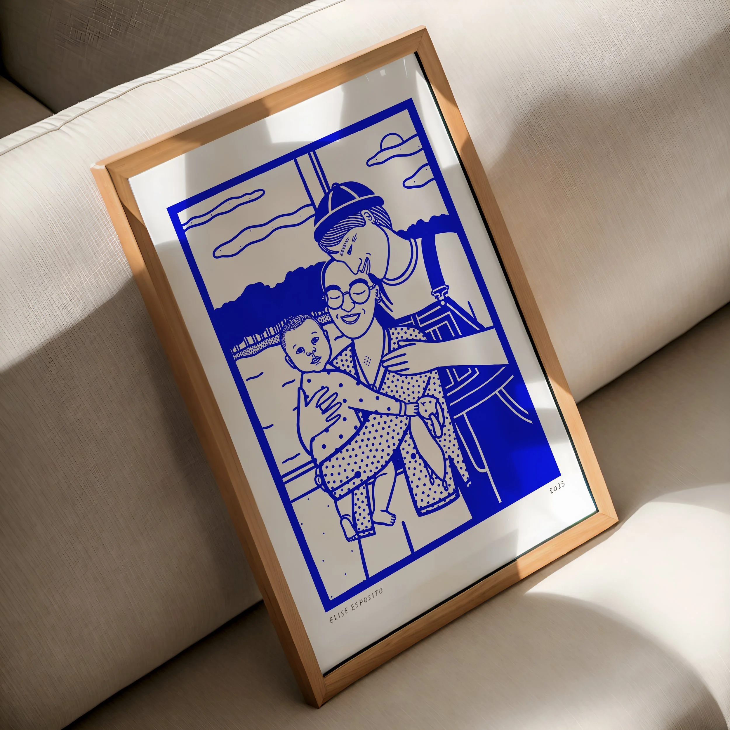 Trained as a graphic designer, I’m drawn to bold patterns and intricate details. I create monochrome gouache drawings in a specific shade of blue that has become my signature color. My work reflects my fascination with simplicity and the beauty found in everyday life. Each piece is an invitation to pause and savor the small, intimate moments that often go unnoticed.